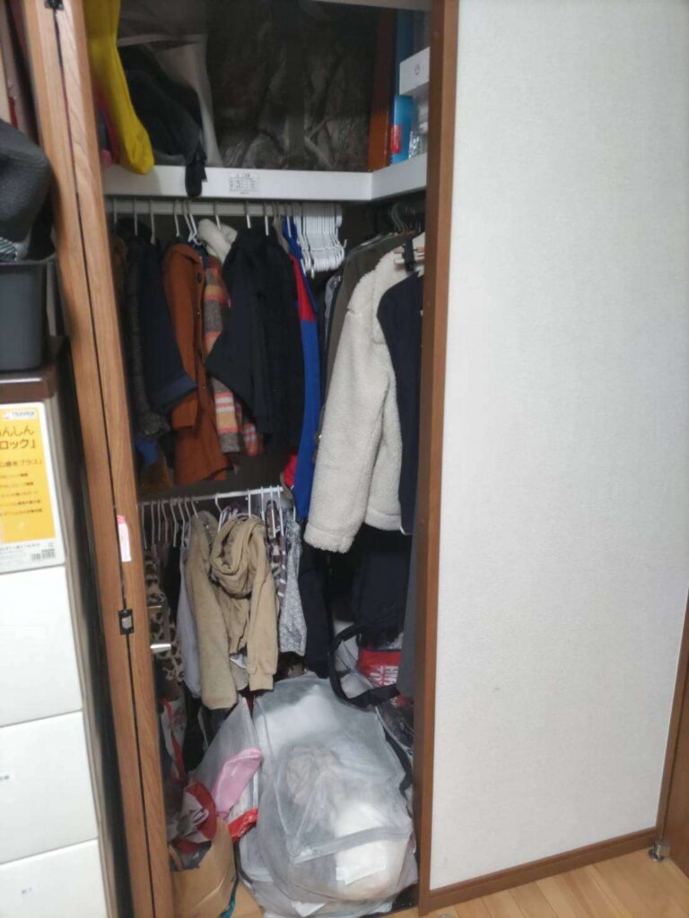 ハンガーも買い足し、おそらく40着近くをかけていたと思います。掃除のたびにハンガーラックが動かしにくいことにストレスを感じ、イライラ。ついにはハンガーラックは物置き部屋へ移動させて、カバン置きに。その結果、物置き部屋もどんどん足の踏み場がなくなっていきました。