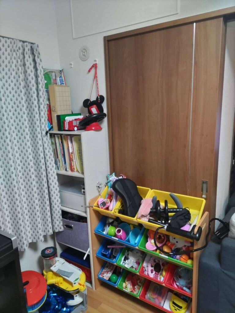 片づけの最初にやってしまったのが、ものを見直さないまま収納用品を買い足すことでした。おもちゃや日用品を収めるために、白いカラーボックスを次々と購入。